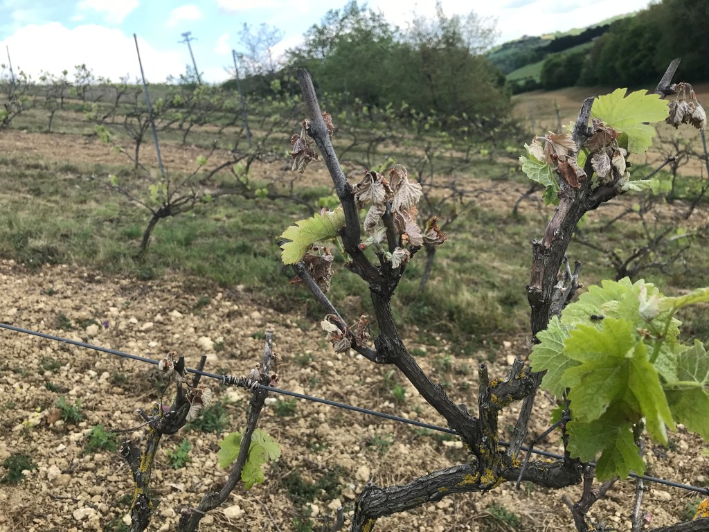 Nur die erfrorenen Rebenknospen geben ein trauriges Bild ab…. allerdings haben spätere Knospen wieder ausgetrieben, so dass wir trotzdem einige Flaschen Merlot keltern können…