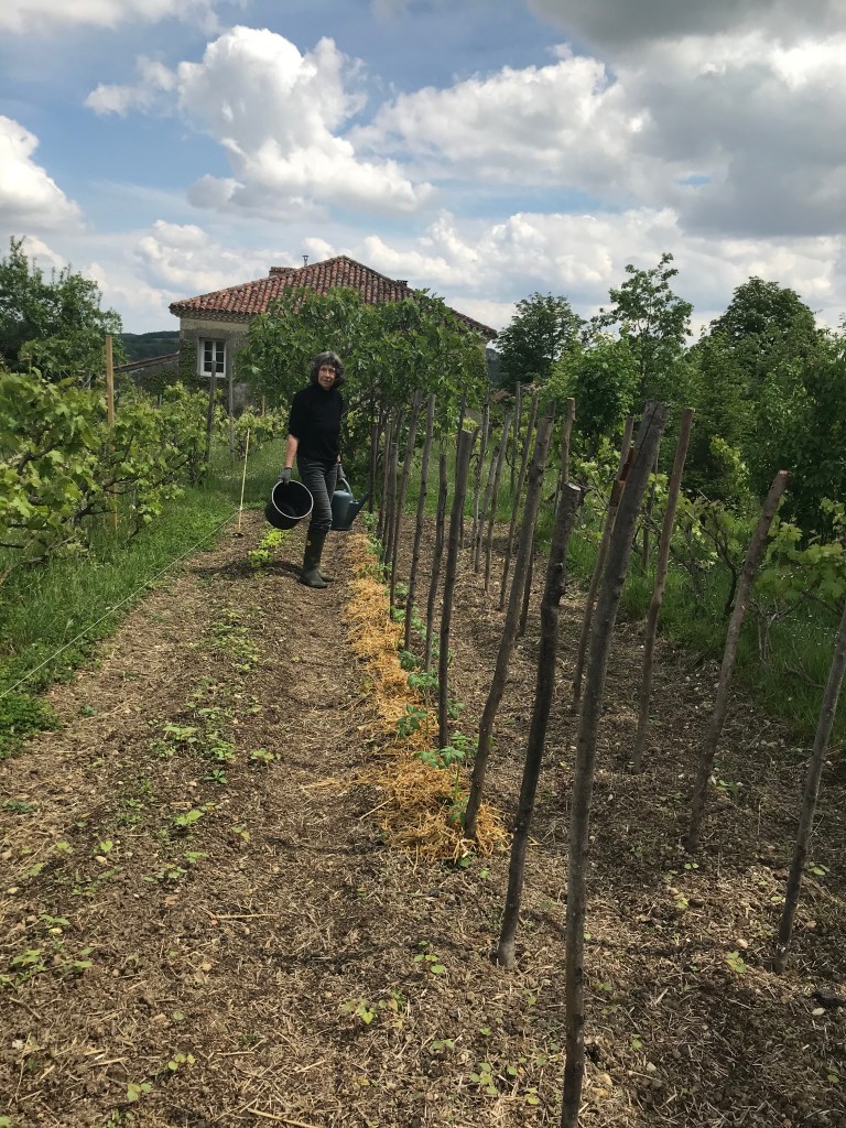 Im Potager hat Stephanie heute die ersten selbstgezogenen Tomatensetzlinge ausgepflanzt…