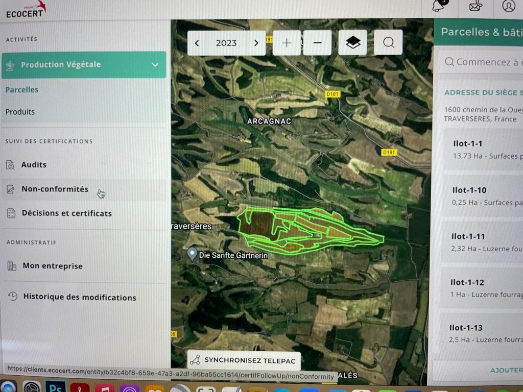 Ecocert https://www.ecocert.com/fr-FR/home ist eine weltweit tätige Kontroll- und Zertifizierungsfirma für den Biologischen Landbau. Ihr Hauptsitz ist hier ganz in der Nähe in L’Isle Jourdain. Heute hat bei uns auf dem Hof die jährliche Kontrolle und Betriebsbesichtigung stattgefunden. Der ausführliche RAPPORT D’AUDIT 2023 hat keine Non-conformités festgestellt. Der ausführliche Bericht und die Zertifikate werden erstmals nur noch in elektronischer Form erstellt und weitergeleitet. Alles ist auf das jährliche ausführliche PAC-Dossier (PoliticAgraireCommune) abgestimmt. Weil wir in diesem Jahr „le statut de notre exploitation“ ändern, ergibt das viel administrativen Aufwand.
