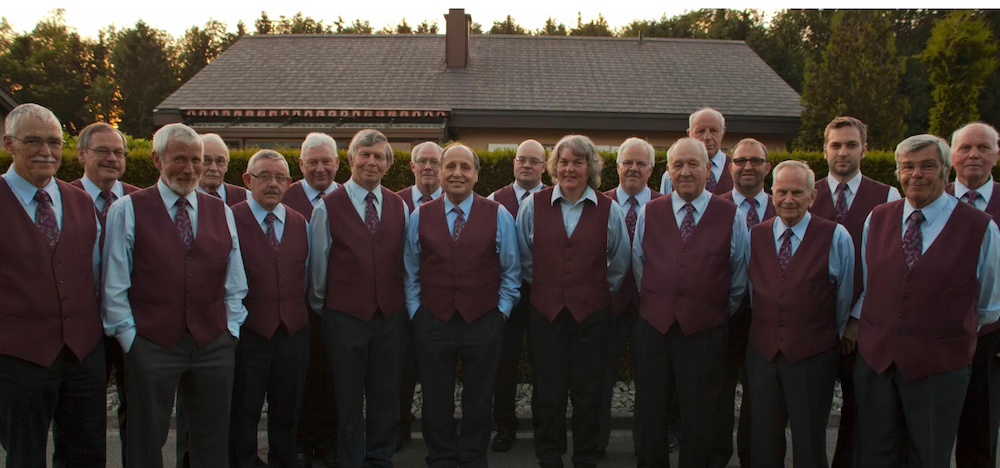 Schon im Foyer des Kornhauses in Bern wird man vom Männerchor Suberg vor der Hecke empfangen (ausgekoppelte Schlussszene aus dem Dokumentarfilm „Zum Beispiel Suberg“).