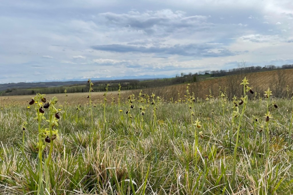 Hunderte Märzophrys (Ophrys exaltata marzuola) am Ende ihrer Blütezeit: