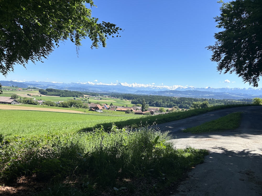 Ausgangspunkt Frienisbergwald mit Blick auf die Berner Alpen