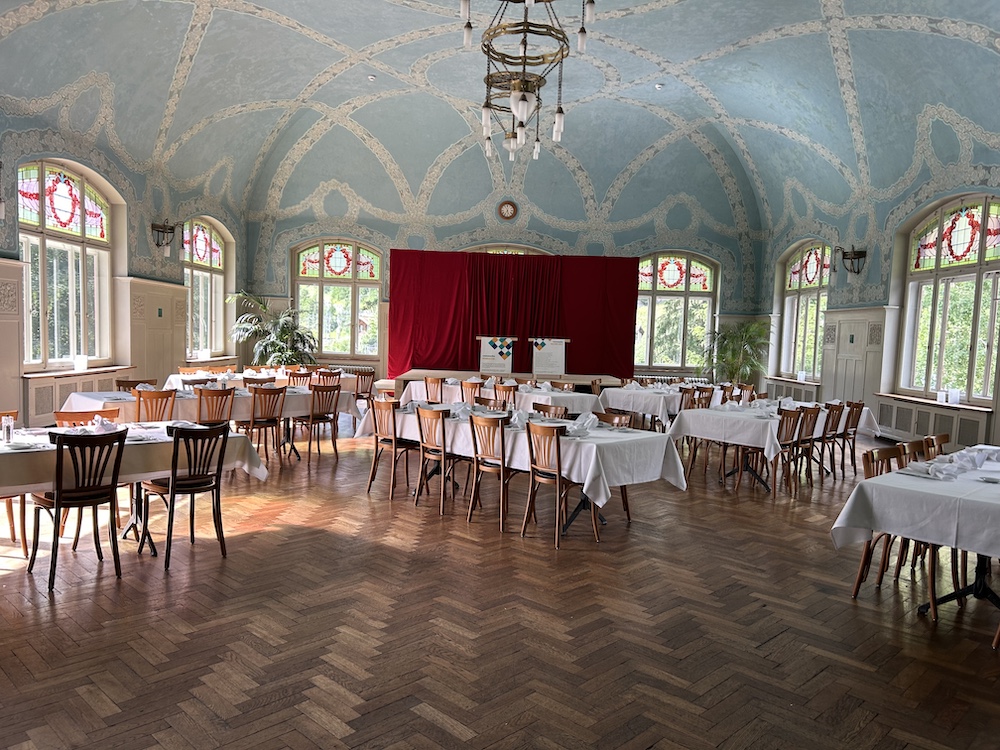 Grosszügige Architektur und Originalausstattung. Der imposante Festsaal gehört zu den wertvollsten der Schweiz ((SWISS HISTORIC HOTELS).