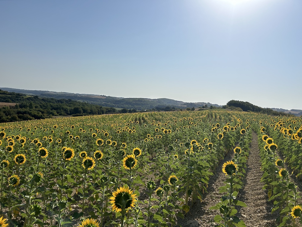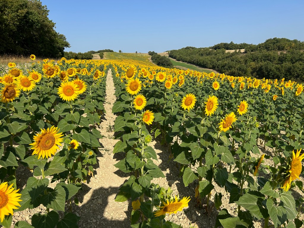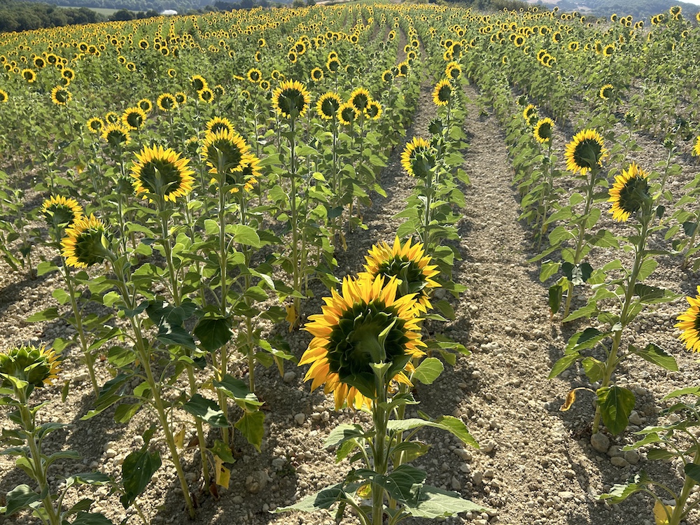 Die Sonnenblumen schauen gegen die Sonne im Osten…