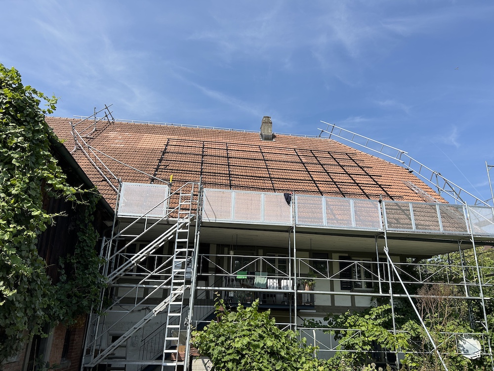 Während 25 Jahren haben wir auf der nach Süden ausgerichteten Dachfläche des Inselmatthofs mit thermischen Solarpanels Warmwasser produziert. Leider ist die Anlage inzwischen undicht und eine Renovation wäre unverhältnismässig teuer geworden. Aus denkmalpflegerischen Gründen (der Hof ist ein geschütztes Baudenkmal) kann nur ein eng definierter Bereich mit Photovoltaik-Panels bestückt werden. Der Solarstrom soll ins Netz eingespeist, bzw. als Ergänzung der Stückholzheizung verwendet werden. Mal sehen ob alles klappt…?