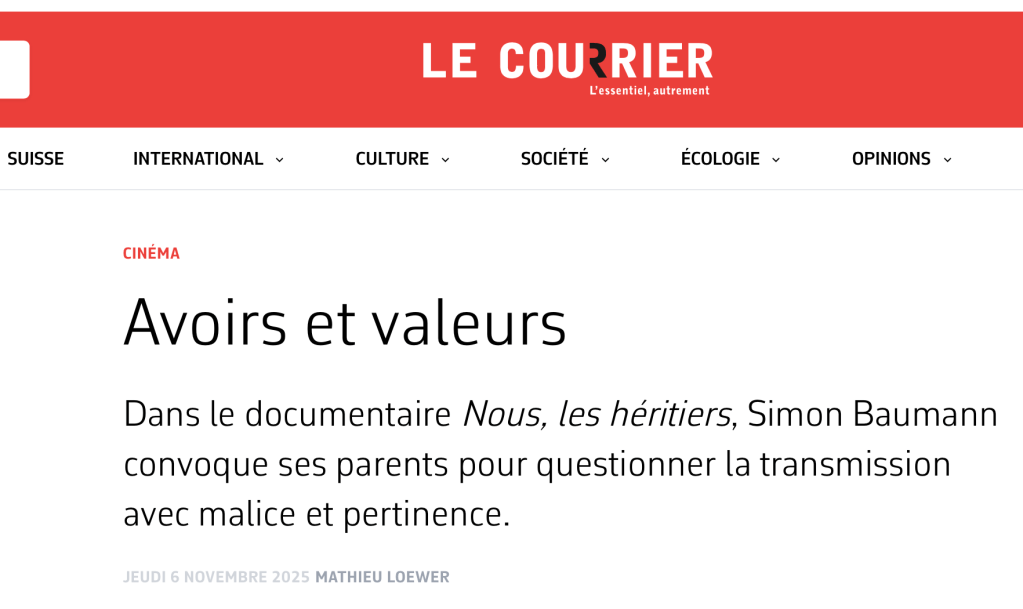 Simon Baumann a suivi sa voie en devenant cinéaste, alors que son frère Kilian – agriculteur et conseiller national – poursuit les combats des parents. Tous deux sont confrontés à un conflit de loyauté: doivent-ils accepter cet héritage encombrant ou refuser et décevoir leurs géniteurs? Au gré des discussions, ce «problème de riches» soulève des questions très pertinentes sur la transmission, des biens comme des valeurs. Car ce legs est à la fois un fardeau et un privilège, en contradiction avec les convictions politiques du couple – puisque tout héritage creuse les inégalités sociales.