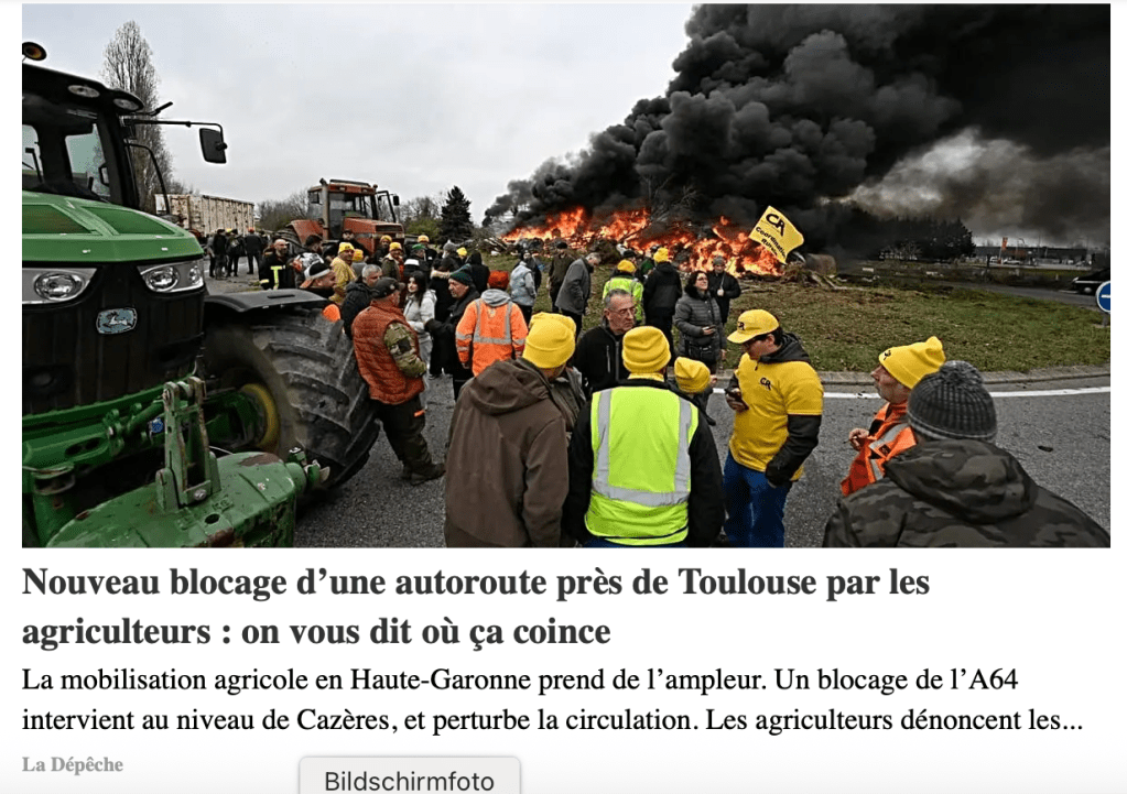 In SW-Frankreich dauern die Bauernproteste seit Wochen an. Mit unzimperlichen, gewaltsamen Methoden werden Regierungsgebäude verschmiert, blockiert und beschädigt.